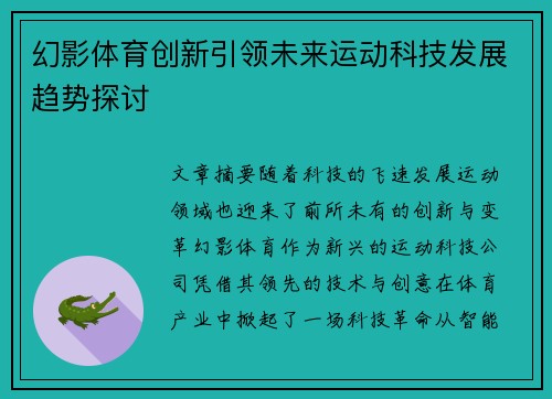 幻影体育创新引领未来运动科技发展趋势探讨