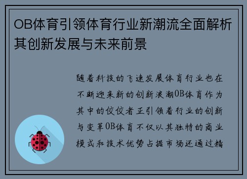 OB体育引领体育行业新潮流全面解析其创新发展与未来前景
