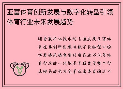 亚富体育创新发展与数字化转型引领体育行业未来发展趋势